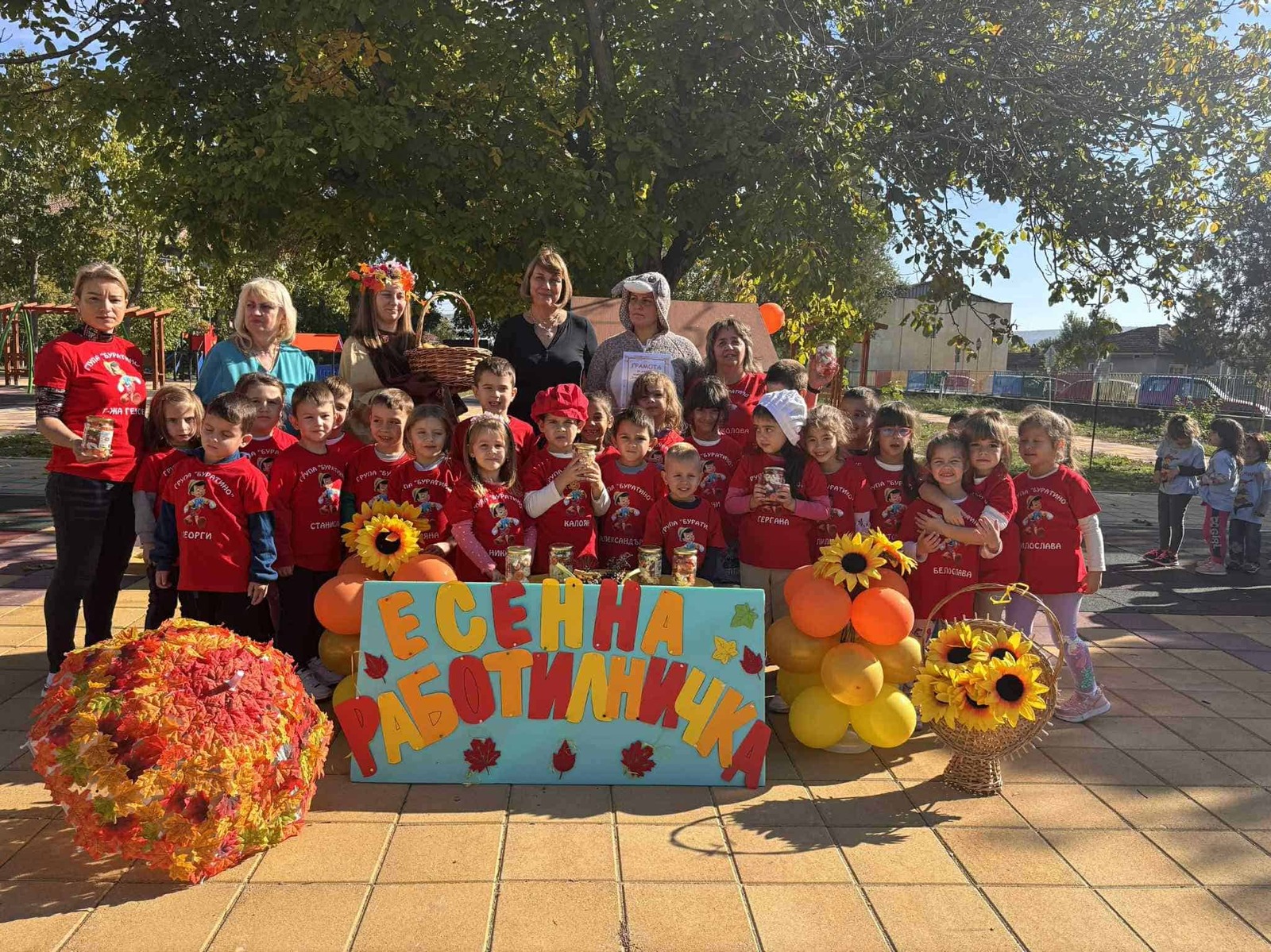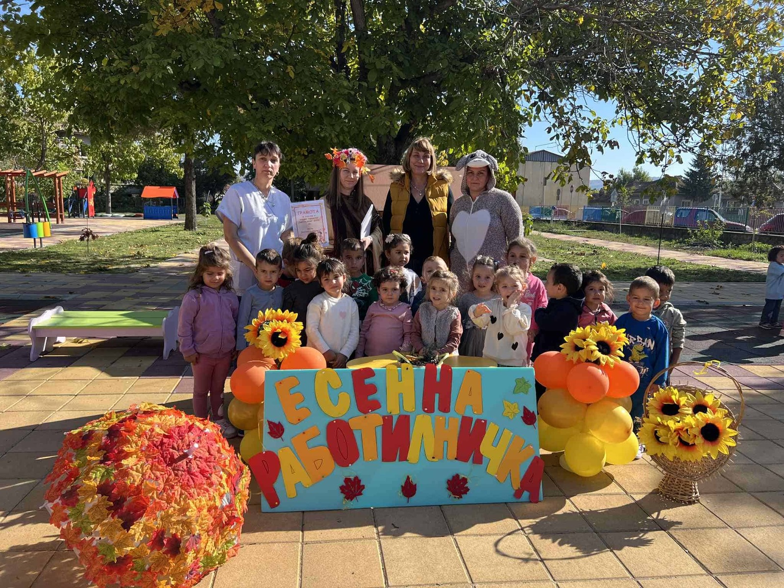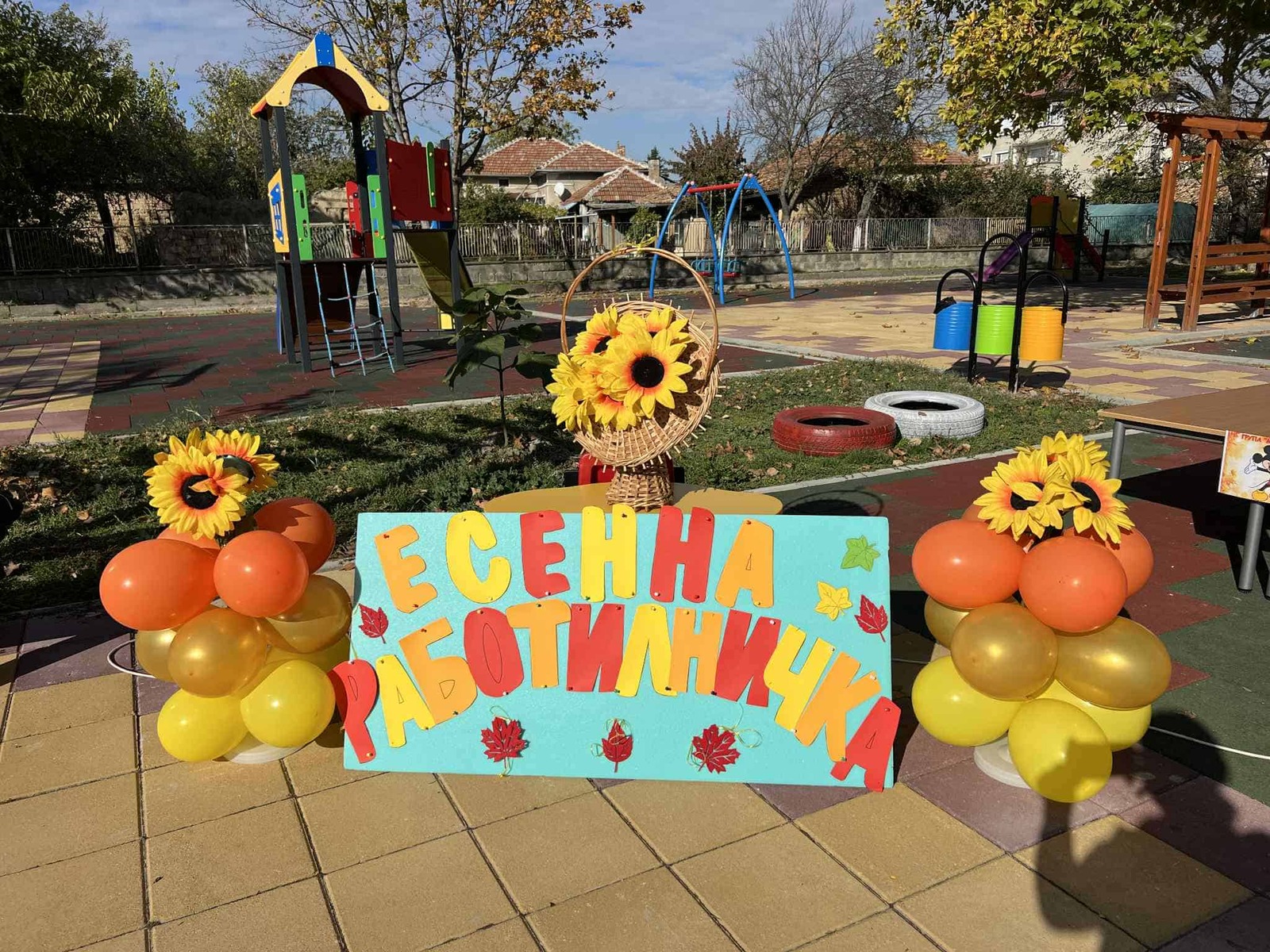 Есента дойде в нашата детска градина с пъстри цветове, аромати и много вдъхновение! Децата участваха в есенното тържество изпълнено с песни, творческа дейност, танци и усмивки. Малките ни творци изработваха различни есенни изделия – малки таралежчета, шарени бурканчета, апликация на есенна картина, кулинарна работилница, рисуване върху стреч фолио. С въображение и старание те превърнаха детската градина в истинска есенна приказка. Есента ни напомня, че всяка промяна може да бъде красива – а в детските усмивки тя блести най-силно!